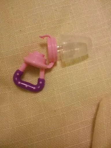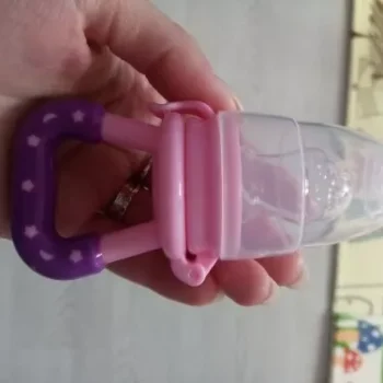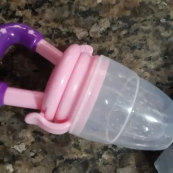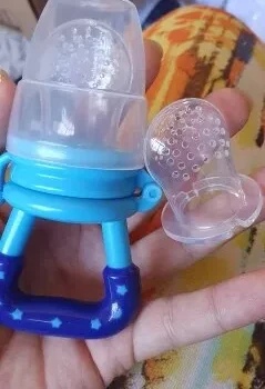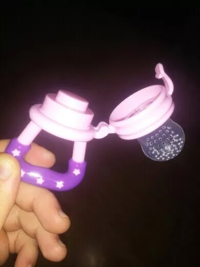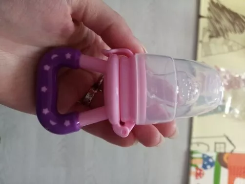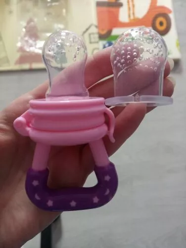 Love these! Although the large one doesn’t hold as much food as the mesh feeders they’re easier to clean and the holes are larger. I keep them in the fridge so they’re extra cold for teething. They’re super easy to clean and the nipple part detaches. My 7 month old gets excited when she sees this!