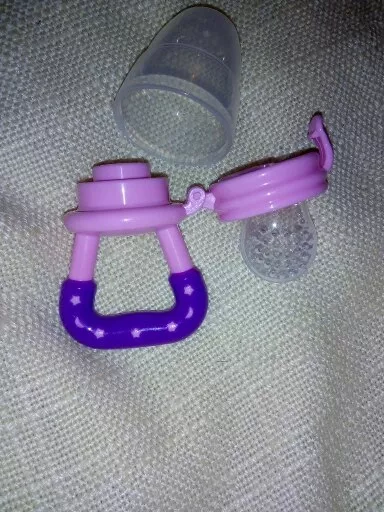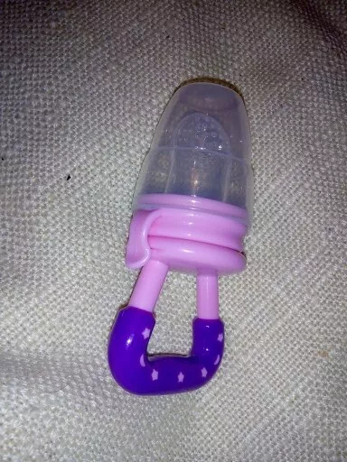 So I saw the mesh screen feeders & thought that would be neat until I wondered how they'd be cleaned... Someone had given me one as their little one out grew the need for it, and as I suspected, it was yucky! I threw it out & went on the hunt for something better. I came across these silicone fruit feeders & I loved them as much as our little one did! There were different sizes (and the nipple parts are interchangeable so you can stick with a favorite color if you'd like) and you can make sure the feeders actually get cleaned! It might be a tad tricky to get into the smaller size without brushes & such, but it's well worth it. I'm sure that pending the foods you put into the nipples, it may change the color of the nipples. We noticed that over a few uses the size we favored had a yellowish tint to it. Really these feeders were just right for us. Peace of mind for us & our increasingly independent little one got to eat lots of yummy foods on his own!