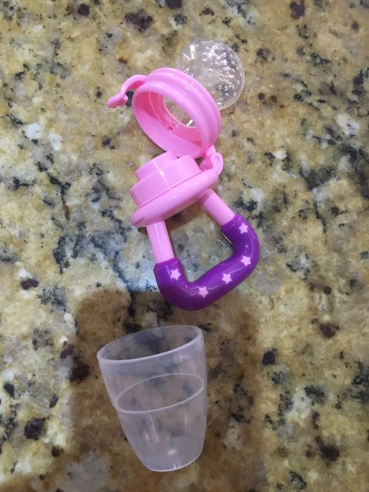 I don’t have to be scared she might choke. She can enjoy fruits and veggies safely. Very easy to clean. The small is to small my 4 month old princess finished her orange 🍊 n a minute and had to refill 3 more time. My wife and I will use the large so we don't have to keep refilling. Great product.