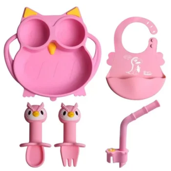 Adorable Silicone Baby Tableware Set – Cartoon Themed Plates, Bowls, Spoon, Fork for Infants and Toddlers 0-6 Years