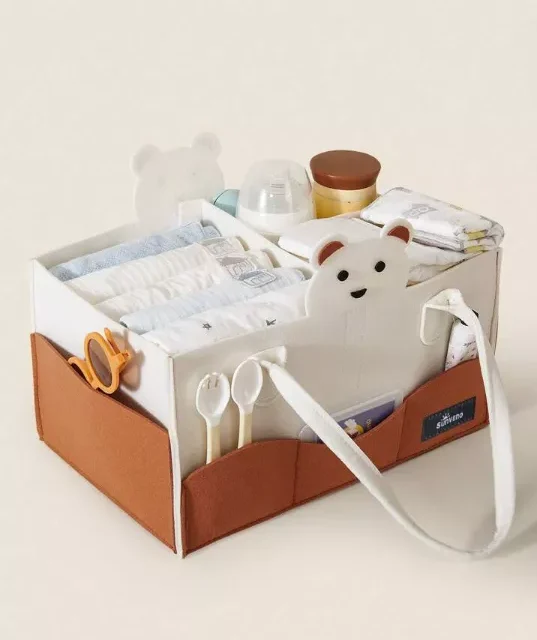 The Bear Cartoon Diaper Storage Basket stands out with its playful design and practicality. The whimsical bear motif adds a touch of joy to any room, while the neutral colors and timeless style ensure it fits seamlessly into any nursery decor. Its adaptable interior allows you to tailor the space to your changing needs, making it a versatile companion throughout your parenting journey.